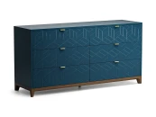 Комод с шестью выдвижными ящиками будет незаменим для хранения вещей в спальне и других помещениях. Прочные и вместительные ящики из ЛДСП, которые выдерживают вес до 25 кг помогут использовать пространство максимально эффективно, а фасады с объемной гравировкой и изящные ножки из массива дуба непременно украсят ваш интерьер.