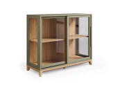 Лаконичный дизайн низкой витрины Case обуславливает легкость ее применения в благородных интерьерах – от классических до ультрасовременных. Боковые элементы и сдвижные фасады со стеклом предоставляют трехсторонний обзор содержимого и демонстрируют яркую текстуру натурального дуба. Особенности: Удобные интегрированные ручки. Каркас витрины выполнен из массива дуба. Заметная текстура дуба на всех деталях, покрытых эмалью. На витрине установлены итальянские направляющие с регулировкой уровня фасадов и доводчиками. Все внутренние детали витрины покрыты натуральным шпоном дуба. Нагрузка на каждую полку до 30 кг.