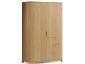 Шкаф позволяет комфортно разложить личные вещи на полках и в ящиках, а также повесить их на вешалку. Конструкция шкафа предусматривает одну секцию со штангой, одну секцию с полками, которые скрыты за фасадом и три вместительных ящика. При необходимости вы можете регулировать высоту полок.