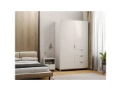 Шкаф позволяет комфортно разложить личные вещи на полках и в ящиках, а также повесить их на вешалку. Конструкция шкафа предусматривает одну секцию со штангой, одну секцию с полками, которые скрыты за фасадом и три вместительных ящика. При необходимости вы можете регулировать высоту полок.