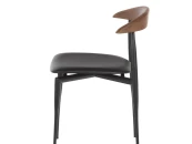 Матовый черный стальной каркас подчеркивает его современный характер, а спинка из массива ореха добавляет нотку тепла и природной элегантности. Черное сиденье из полиуретана и поливинилхлорида обеспечивает комфорт и легкость в уходе.