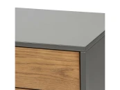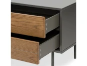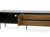 Эта тумба предназначена для размещения телевизора и других мультимедийных устройств. Просторные ящики и открытые полки обеспечивают удобное хранение аксессуаров, таких как пульты, DVD-диски или игровые консоли.