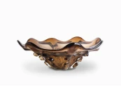Изготовлена из коричневого стекла, ваза обладает уникальной текстурой и глубиной цвета, что создает эффектный визуальный образ. Элегантные линии и форма вазы напоминают космические объекты, придавая ей современный и стильный вид. Она идеально подходит для создания атмосферы уюта и стиля.