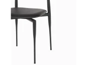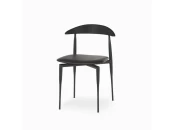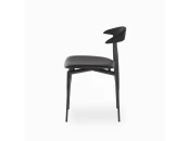 Матовый черный стальной каркас подчеркивает его современный характер, а спинка из массива ореха добавляет нотку тепла и природной элегантности. Черное сиденье из полиуретана и поливинилхлорида обеспечивает комфорт и легкость в уходе.