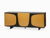 Дополнительный цвет каркаса — золотой. Золотые акценты добавляют тумбе изысканности и шарма, создавая эффектный контраст с черным цветом.