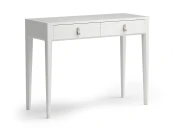 Универсальный консольный стол, который уверенно выполнит функцию косметического столика. Компактные габариты позволяют использовать стол в узком холле или небольшой комнате, а утонченный образ модели поддержан оригинальной фрезеровкой ножек и ручками из натуральной кожи, выполненными вручную мастерами The IDEA.