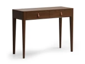 Универсальный консольный стол, который уверенно выполнит функцию косметического столика. Компактные габариты позволяют использовать стол в узком холле или небольшой комнате, а утонченный образ модели поддержан оригинальной фрезеровкой ножек и ручками из натуральной кожи, выполненными вручную мастерами The IDEA.