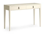 Универсальный консольный стол, который уверенно выполнит функцию косметического столика. Компактные габариты позволяют использовать стол в узком холле или небольшой комнате, а утонченный образ модели поддержан оригинальной фрезеровкой ножек и ручками из натуральной кожи, выполненными вручную мастерами The IDEA.