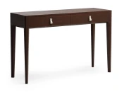 Универсальный консольный стол, который уверенно выполнит функцию косметического столика. Компактные габариты позволяют использовать стол в узком холле или небольшой комнате, а утонченный образ модели поддержан оригинальной фрезеровкой ножек и ручками из натуральной кожи, выполненными вручную мастерами The IDEA.