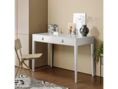 Основательный стол для организации рабочего места. Это стол с правильной прямоугольной формой и двумя вместительными ящиками для бумаг, оригинальными ручками The IDEA из натуральной кожи и неповторимой текстурой дуба, которая просматривается под эмалью.