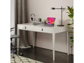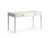 Основательный стол для организации рабочего места. Это стол с правильной прямоугольной формой и двумя вместительными ящиками для бумаг, оригинальными ручками The IDEA из натуральной кожи и неповторимой текстурой дуба, которая просматривается под эмалью.