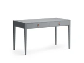 Основательный стол для организации рабочего места. Это стол с правильной прямоугольной формой и двумя вместительными ящиками для бумаг, оригинальными ручками The IDEA из натуральной кожи и неповторимой текстурой дуба, которая просматривается под эмалью.