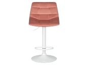 Стул барный, цвет сиденья пудрово-розовый , цвет основания белый. Материал каркаса - фанера. Материал основания - металл. Тип основания - диск. Вращение сиденья - есть. Форма сиденья - фигурная. Мягкое сиденье и спинка. Регулировка высоты имеется.