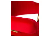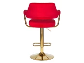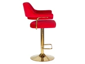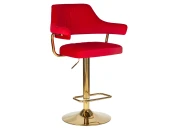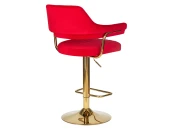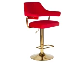 Стул барный цвет сиденья красный велюр , цвет основания золото. Материал обивки велюр. Материал каркаса металл. Материал основания металл. Тип основания диск. Вращение сиденья есть. Форма сиденья фигурное.