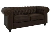 Линейка диванов «Chester Classic» представлена классическими моделями в английском стиле на ножках. Изделие может быть выполнено в натуральной коже или в другой обивке на ваш выбор. Отличительная черта диванов «Chester Classic» — спинка и подлокотники находятся на одном уровне и имеют одинаковую толщину. Благодаря наклону мягкой спинки и независимому пружинному блоку в основании сиденья, «Chester Classic» считается диваном повышенной комфортности. Подлокотники имеют форму свитков. Подобные элементы часто встречаются в архитектуре барокко. Они привносят экспрессию, ощущение королевского стиля. Ножки дивана выполнены из дерева, имеют форму завитка, их цвет может быть коричневым или чёрным — на ваш выбор.||Представленная на фото модель — двухместный диван. Натуральная качественная кожа, используемая для этой модели, имеет роскошную фактуру, не требует специального ухода, «дышит» - воздух и влага проходят сквозь неё, создавая циркуляцию. Долговечна, вызывает приятные тактильные ощущения, а эффект пулл-ап - кожа светлеет в местах натяжения - придаёт винтажный вид . В основании дивана - прочный каркас из бруса хвойных пород, мягкие комфортные подушки. Глубокая каретная стяжка в технике «капитоне» на спинке и подлокотниках. Которые украшены декоративными гвоздиками под состаренную бронзу, придающими изделию выразительный и аутентичный вид. «Chester Classic» - это респектабельность и высокое качество.
