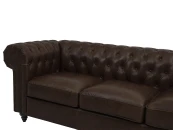Линейка диванов «Chester Classic» представлена классическими моделями в английском стиле на ножках. Изделие может быть выполнено в натуральной коже или в другой обивке на ваш выбор. Отличительная черта диванов «Chester Classic» — спинка и подлокотники находятся на одном уровне и имеют одинаковую толщину. Благодаря наклону мягкой спинки и независимому пружинному блоку в основании сиденья, «Chester Classic» считается диваном повышенной комфортности. Подлокотники имеют форму свитков. Подобные элементы часто встречаются в архитектуре барокко. Они привносят ощущение шика и королевского стиля. Ножки дивана выполнены из дерева, имеют форму завитка, их цвет может быть коричневым или чёрным — на ваш выбор.||Представленная на фото модель — трёхместный кожаный диван. Натуральная качественная кожа, используемая для этой модели, имеет роскошную фактуру, не требует специального ухода, «дышит» - воздух и влага проходят сквозь неё, создавая циркуляцию. Долговечна, вызывает приятные тактильные ощущения, а эффект пулл-ап - кожа светлеет в местах натяжения - придаёт винтажный вид . В основании дивана - прочный каркас из бруса хвойных пород, мягкие комфортные подушки. Глубокая каретная стяжка в технике «капитоне» на спинке и подлокотниках. Которые украшены декоративными гвоздиками под состаренную бронзу, они придают изделию выразительный и аутентичный вид. «Chester Classic» - это культовый дизайн и респектабельность.