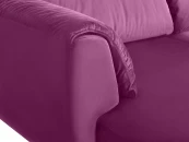 Оригинальный вид дивану придают подлокотники и спинка сложной формы: они скруглённые, многослойные, подлокотник и вовсе двойной: основная часть дополняется несъёмными подушками. На Marsala удобно сидеть, лежать, читать, делать всё, что угодно! Глубина сиденья — 100 см, вы можете устроиться с максимальным комфортом. За мягкость и поддержку отвечает наполнитель — Memory Foam, холлофайбер и другие современные виды пенополиуретана.