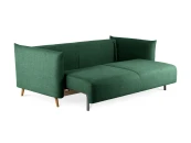 Диван Menfi превращается в кровать с помощью выдвижного механизма «еврокнижка» — прост и надежен в эксплуатации. Чтобы трансформировать диван нужно вытянуть секцию сиденья вперед, а на освободившееся место положить спинку дивана. Под сиденьем есть ниша, в которой можно хранить белье, текстиль, различные вещи.