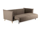 Диван Menfi превращается в кровать с помощью выдвижного механизма «еврокнижка» — прост и надежен в эксплуатации. Чтобы трансформировать диван нужно вытянуть секцию сиденья вперед, а на освободившееся место положить спинку дивана. Под сиденьем есть ниша, в которой можно хранить белье, текстиль, различные вещи.