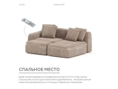 Диван не раскладывается в традиционном смысле этого слова, однако спальное место легко достигается благодаря банкетке, которая в нужный момент быстро фиксируется с помощью специального механизма. Модули можно передвигать, а также докупать при необходимости. Диван отлично подходит как для больших пространств, так и для компактных квартир. Вы можете экспериментировать с расстановкой модулей, создавая уникальные конфигурации, которые соответствуют вашим потребностям и стилю жизни.