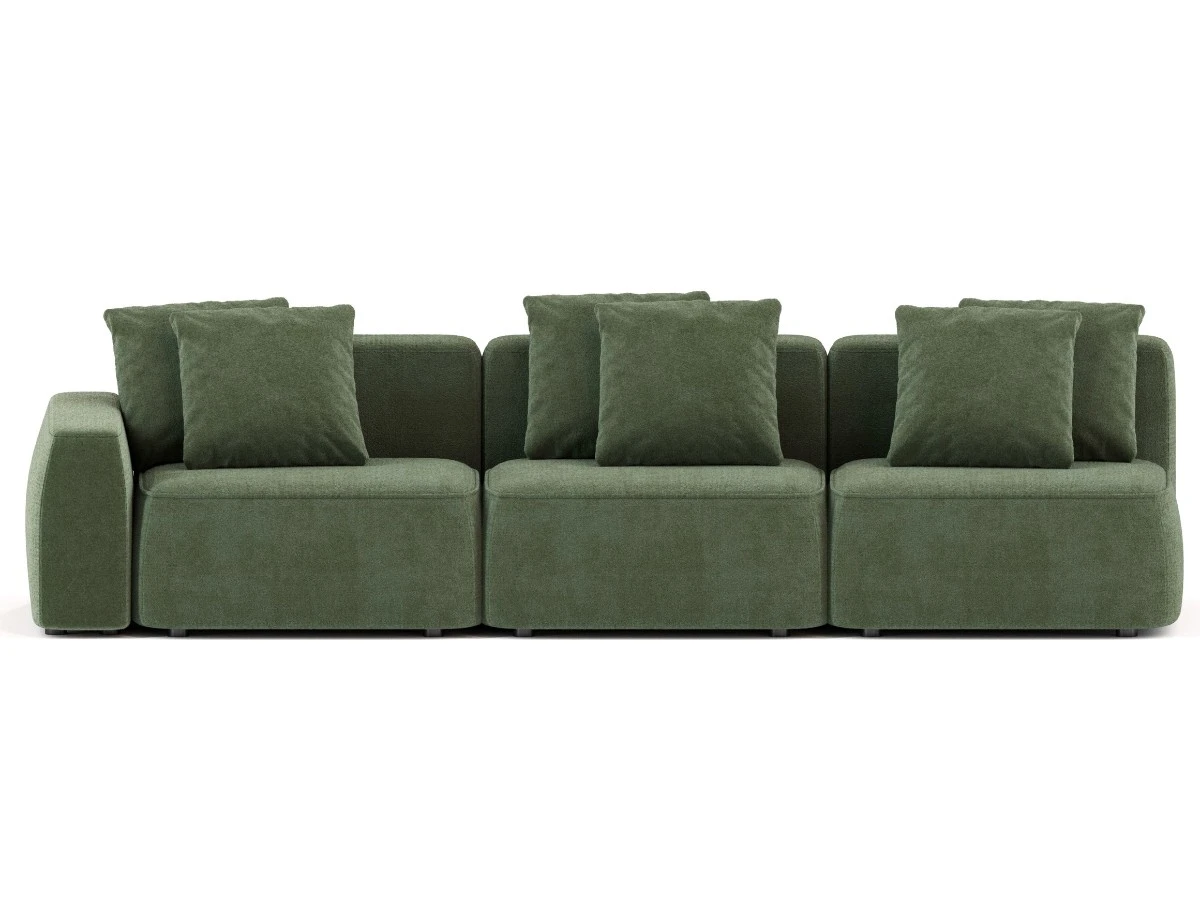 Диван не раскладывается в традиционном смысле этого слова, однако спальное место легко достигается благодаря банкетке, которая в нужный момент быстро фиксируется с помощью специального механизма. Модули можно передвигать, а также докупать при необходимости. Диван отлично подходит как для больших пространств, так и для компактных квартир. Вы можете экспериментировать с расстановкой модулей, создавая уникальные конфигурации, которые соответствуют вашим потребностям и стилю жизни.