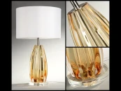Настольная лампа с основанием из стекла янтарного цвета. Цилиндрический текстильный абажур белого цвета.