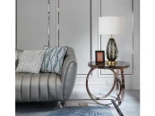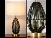 Настольная лампа Delight Collection BRTL3203R с основанием из стекла серо-зеленого цвета. Металлические части цвета латунь. Текстильный абажур белого цвета. Размер абажура: диаметр 36 см, высота 25 см.