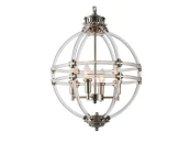 Подвесной светильник Impero выполнен из прозрачных акриловых дуг, соединенных металлическими элементами. Арматура из никелированного металла.