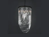 Подвесной светильник на арматуре из металла черно-коричневого цвета. Плафон состоит из прозрачных хрустальных закрученных подвесок. Высота светильника регулируется.