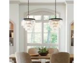 Подвесной светильник с бронзовой арматурой. Подвески выполнены из прозрачного стекла и имеют треугольное сечение.