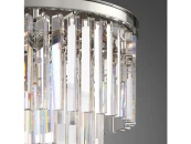 Подвесной светильник с хромированной арматурой. Подвески выполнены из прозрачного стекла и имеют треугольное сечение.