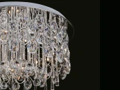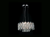 Подвесной светильник из коллекции Nikon с арматурой золотого цвета. Подвесной плафон люстры выполнен из металла и декоративных элементов из хрусталя янтарного цвета. Высоту светильника можно изменять за счет регулирования монтажных тросов.