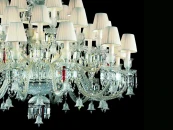Хрустальная люстра Baccarat из коллекции Moollona с текстильными абажурами белого цвета. Прозрачные хрустальные элементы и дополняют композицию красные подвески. Расположенные на разных уровнях лампы придадут помещению объемное освещение. Люстра 30-ти рожковая на металлической хромированной арматуре в стеклянном обрамлении. Высота светильника регулируется за счет звеньев цепи.