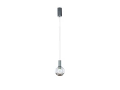 Подвесной светильник из коллекции Aria на хромированной арматуре. Шарообразный плафон из прозрачного стекла, сверху хромированная трубка со светодиодом. Высота светильника регулируется.