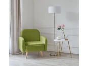 Обивка выполнена из ткани, которая подарит вашему пространству красоту, уют и теплоту. Высокие опоры создают визуальный эффект легкости и позволяют просто и удобно совершить уборку под креслом. Ножки компактного кресла выполнены из массива березы, что делает конструкцию кресла надежной и стабильной. Выдерживает нагрузку до 150 кг.