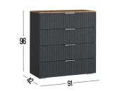 Стильный и практичный комод с ящиками, решит как минимум две ваших задачи, будет служить многофункциональной нишей для хранения вещей, одежды, белья и универсальной подставкой для различных предметов интерьера, а также можно использовать в виде тумбы под телевизор. Наша коллекция Ингрия российского производства выглядят легко и современно, идеально впишется в лофт, скандинавский, современный, минимализм и прочие популярные стили интерьеров. Его минималистичный дизайн придаст легкость и простор всему вашему интерьеру. Комод компактный и сэкономит пространство и организует грамотное хранение вещей. Комод имеет 4 выдвижных ящика. За удобство и комфорт открывания ящиков отвечают шариковые направляющие (без доводчиков), с полным выдвижением. Ящики с такой системой открывания будут ходить практически бесшумно, и выдвигаться полностью, даже при повышенной нагрузке. Ножки изготовлены из прочного массива дерева. Комод изготовлен из материалов высокого качества. За высокопрочность и долговечность отвечает корпус, выполненный из ЛДСП, подходит для активного использования. За эстетику и лаконичность дизайна отвечает фасад из МДФ созданный путем сложной фрезеровки в виде 3D рисунка. Накладные алюминиевые ручки для комода подчеркнут монолитный образ. Комод поставляется в разобранном виде, пусть это вас не пугает. В комплекте предусмотрены все необходимые комплектующие, подробная инструкция и фурнитура. Сборка комода серого с ящиками не потребует особых навыков и не отнимет много времени. Современная мебель для дома должна не только брать на себя пару задач по организации пространства, но и гармонично смотреться, выполняя нужные нам функции. Поэтому комод можно использовать в разных помещениях в гостиной, спальне, прихожей (коридоре), в детской для игрушек, в офисе, в салоне красоты, на балконе. Комод для вещей справится со всеми возложенными на него функциями. Перед отправкой мебели, каждое изделие проходит проверку на наличие брака. Для целостности и сохранности каждого изделия мы разработали усиленную, надежную упаковку. Европейское качество от российского производителя - по доступным ценам.
