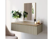 Стильный и практичный Туалетный столик Ингрия с ящиками, решит как минимум две ваших задачи, будет служить многофункциональной нишей для хранения вещей, и универсальной подставкой для различных предметов интерьера. Наша модель Ингрия  российского производства выглядят легко и современно, идеально впишется в лофт, скандинавский, современный, минимализм и прочие популярные стили интерьеров. Его минималистичный дизайн придадут легкость и простор всему вашему интерьеру. Компактный туалентный столик сэкономит пространство и организует грамотное хранение вещей. Имеет выдвижной ящик. За удобство и комфорт открывания ящика отвечают шариковые направляющие (без доводчиков), с полным выдвижением и системой открывания Push-to-Open . Ящики с такой системой открывания будут ходить практически бесшумно, и выдвигаться полностью, даже при повышенной нагрузке.  За высокопрочность и долговечность отвечает корпус, выполненный из ЛДСП, подходит для активного использования. За эстетику и лаконичность дизайна отвечает фасад из МДФ созданный путем сложной фрезеровки в виде 3D рисунка.