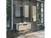 Створка оснащена петлями с механизмом плавного закрывания. Высококачественное зеркальное полотно с амальгамой на основе серебра. Фасад и корпус из влагостойкого ЛДСП Дуб дымчатый. За створкой одна горизонтальная полка. Под зеркалом расположена металлическая полочка для размещения предметов для умывания. Зеркало и мебельный элемент два отдельных изделия, поэтому могут быть подвешены, как в правом так и в левом варианте.