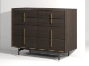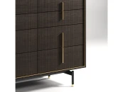 Коллекция мебели в стиле minimaluxe. Чистота линий и пропорций дополнена роскошными фактурами 3D дуба в благородном темно-кофейном оттенке и декоративной фурнитурой из латуни, выполненной по авторским экизам.Материалы: корпус и фасады - МДФ, 3D шпон дуба, полуглянцевый кофейный лак; ящики - МДФ, шпон ясеня, кофейное минеральное масло; декоративная фурнитура - латунь. Фурнитура - направляющие скрытого типа с доводчиками.Конфигурация: 8 ящиков.Изделие поставляется в собранном виде.