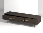 Коллекция мебели в стиле minimaluxe. Чистота линий и пропорций дополнена роскошными фактурами 3D дуба в благородном темно-кофейном оттенке и декоративной фурнитурой из латуни, выполненной по авторским экизам.Материалы: корпус и фасады - МДФ, 3D шпон дуба, полуглянцевый кофейный лак; ящики - МДФ, шпон ясеня, кофейное минеральное масло; декоративная фурнитура - латунь. Фурнитура - направляющие скрытого типа с доводчиками.Конфигурация: 3 ящика.Изделие поставляется в собранном виде.