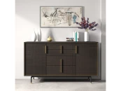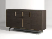 Коллекция мебели в стиле minimaluxe. Чистота линий и пропорций дополнена роскошными фактурами 3D дуба в благородном темно-кофейном оттенке и декоративной фурнитурой из латуни, выполненной по авторским экизам.Материалы: корпус и фасады - МДФ, 3D шпон дуба, полуглянцевый кофейный лак; ящики - МДФ, шпон ясеня, кофейное минеральное масло; декоративная фурнитура - латунь. Фурнитура - петли и направляющие скрытого типа с доводчиками.Конфигурация: 2 двери /4 ящика /3 полкиИзделие поставляется в собранном виде.