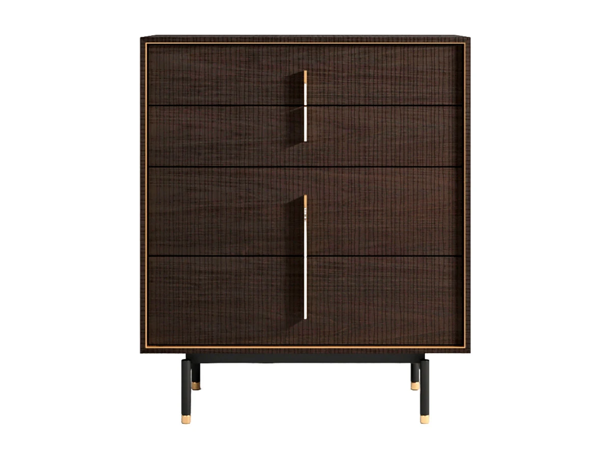 Коллекция мебели в стиле minimaluxe. Чистота линий и пропорций дополнена роскошными фактурами 3D дуба в благородном темно-кофейном оттенке и декоративной фурнитурой из латуни, выполненной по авторским экизам.Материалы: корпус и фасады - МДФ, 3D шпон дуба, полуглянцевый кофейный лак; ящики - МДФ, шпон ясеня, кофейное минеральное масло; декоративная фурнитура - латунь. Фурнитура - направляющие скрытого типа с доводчиками.Конфигурация: 2 ящика.Изделие поставляется в собранном виде.