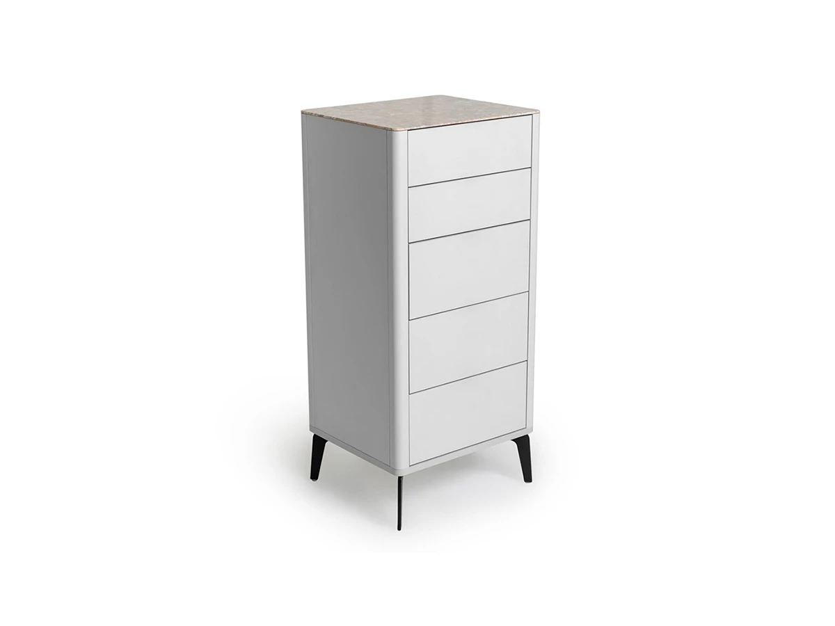 Витрина выполнена из МДФ облицованным инновационным материалом с эффектом soft touch. Представлена в популярном светло-сером цвете. Ящики в отделке текстиль украшают внутреннее пространство витрины. Качественная, скрытая система выдвижения придаёт легкость и комфорт при использовании. Топ выполнен из искусственного камня, который отлично сочетается с корпусом. Мягкая, обтекаемая форма легко вольется в Ваш интерьер и сделает его уютным и стильным.