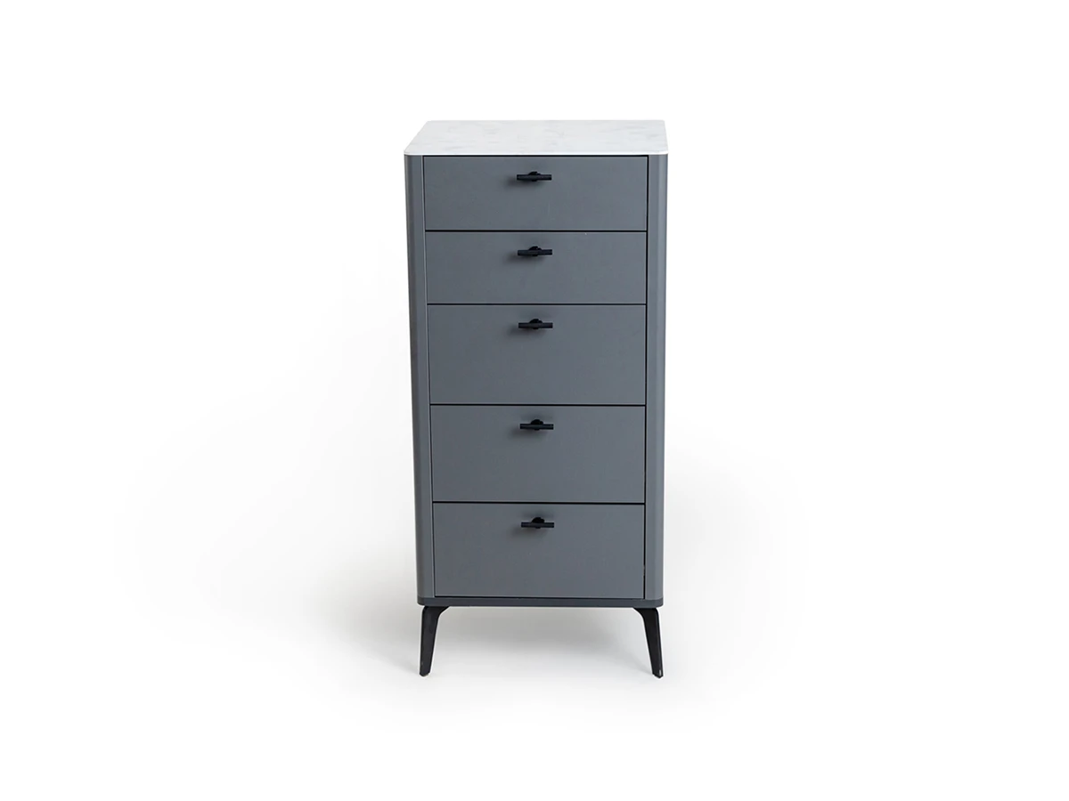 Витрина выполнена из МДФ облицованным инновационным материалом с эффектом soft touch. Представлена в популярном темно-сером цвете. Ящики в отделке текстиль украшают внутреннее пространство витрины. Качественная, скрытая система выдвижения придаёт легкость и комфорт при использовании. Топ выполнен из искусственного камня, который отлично сочетается с корпусом. Мягкая, обтекаемая форма легко вольется в Ваш интерьер и сделает его уютным и стильным.