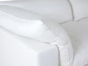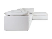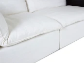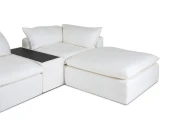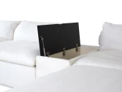 Материал обивки - рогожка (80% вискоза, 20% лен) в 8 категории отличающаяся повышенной прочностью, продолжительной эксплуатацией и износостойкостью. Материал ножек - пластик. Наполнитель подушек - пух/перо. Лицевой чехол подушек - съемный, на молнии. Столешница приставного столика из МДФ со шпоном.