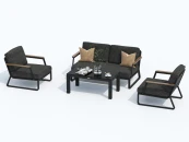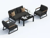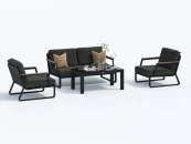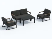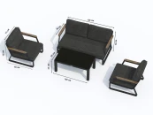 Мягкий сет состоит из большого дивана, уютных кресел, кофейного столика со столешницей из черного закаленного стекла. Подлокотники дивана и кресел декорированы благородным тиковым деревом. Минималистичный дизайн и сдержанные оттенки, которые можно разбавить яркими деталями в виде небольших подушек или пледа. Чехлы темно-серого Цвета маренго идеально сочетаются с темно-серым каркасом. Они не выгорят на солнце и выдержат любые капризы погоды. Кроме того, их легко снять и почистить, если на них есть видимые загрязнения.
