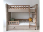 Мягкая уютная двухъярусная кровать Elit soft с каретной стяжкой. В комплект входит вместительный ящик для хранения постельный принадлежностей или игрушек. Кровать имеет просторное спальное место 90*200 см. Дополнительно можно заказать защитные бортики на нижний ярус. Материал: бук, береза. Обивка: ткань микрошенилл