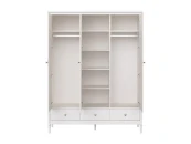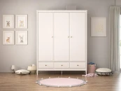 Вместительный трех створчатый шкаф Elit позволит удобно разместить большое колличество вещей. У шкафа три отделения с полками и двумя штангами для одежды. Нижние ящики на бесшумных направляющих с доводчиками. Каркас шкафа сделан из массива бука, что обеспечивает устойчивость и долговечность конструкции. Плоскости из МДФ.