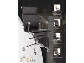 Черная экокожа: Обивка выглядит роскошно и делает кресло стильным акцентом в любом офисе. Экокожа — это гарантия долговечности и легкости в уходе.
