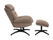 Кресло мягкое Everprof Kiwi — это сочетание современного дизайна, комфорта и функциональности. Выполненное в благородном бежевом цвете, оно станет стильным акцентом в интерьере гостиной, кабинета или спальни. В комплект входит удобный пуф, который дополнительно усиливает комфорт и позволяет полностью расслабиться. Кресло для отдыха с поворотным механизмом обеспечивает свободу движений и удобство использования, а продуманная конструкция с поясничной поддержкой и мягким подголовником гарантирует правильное положение тела. Это делает кресло идеальным для длительного отдыха, чтения или просмотра фильмов. Обивка из качественной ткани приятна на ощупь и обладает высокой износостойкостью, сохраняя свой первоначальный вид даже при частом использовании. Наполнитель из вспененного полиуретана плотностью 22-25 кг/м? обеспечивает оптимальную мягкость и долговечность изделия. Металлическая черная крестовина гарантирует устойчивость и выдерживает нагрузку до 150 кг. Это стильное кресло с пуфом подойдет для пользователей с ростом от 170 до 200 см, обеспечивая комфортное размещение для каждого. Компактные размеры и универсальный дизайн позволяют легко вписать модель в любой интерьер, добавив уют и гармонию вашему дому. Кресло мягкое Everprof Kiwi — это не просто мебель, а ваш личный уголок уюта и расслабления, который подарит вам комфорт каждый день. Из-за особенностей цветопередачи различных электронных устройств цвет изделия и обивки на сайте может отличаться от цвета реального экземпляра. Производитель оставляет за собой право без уведомления потребителя вносить изменения в конструкцию изделий для улучшения их технологических и эксплуатационных характеристик. Согласно ГОСТ 19917-2014 габаритные размеры могут отличаться от указанных на +- 20мм.
